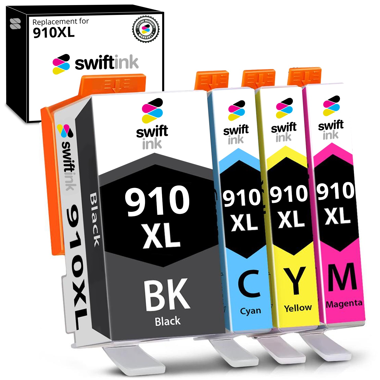 Compatible HP 910XL 4-Set High Yield Ink Cartridges: 1 each of Black / Cyan / Magenta / Yellow